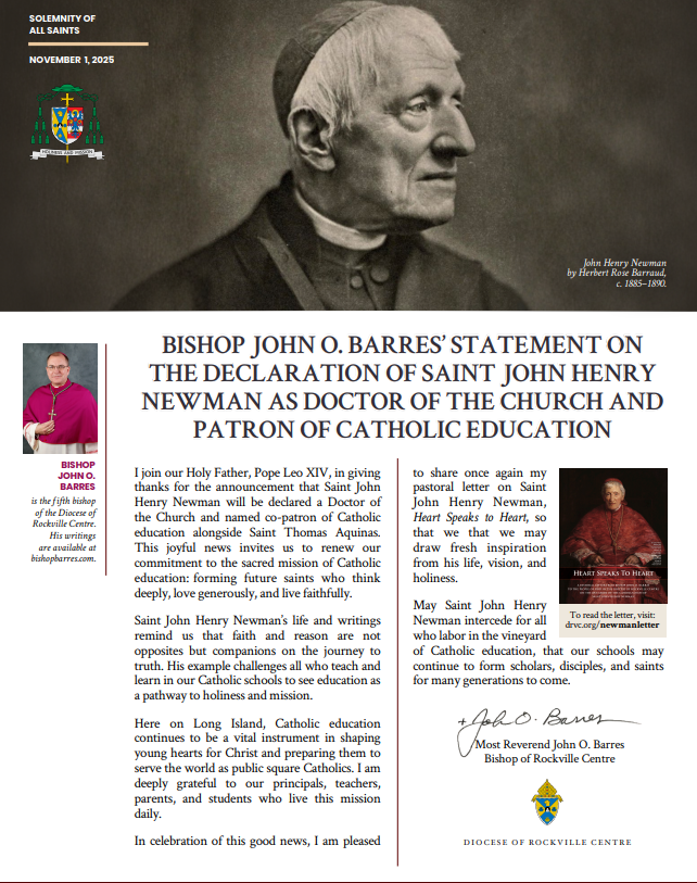 Bishop Barres’ Statement on St. John Henry Newman